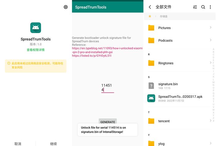 原理:fastboot下获取序列号,通过签名的APK计算出解锁BL的bin文件,最后fastboot刷