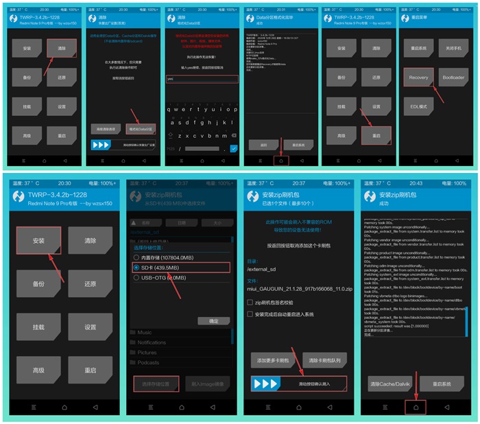 手机上点安装,找到包滑动刷入就正式开始啦。以上操作完成后,点击重启手机等待