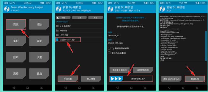 击安装,找到对应的刷机包直接滑动刷入,提示成功后,点击重启系统,静静等待开机