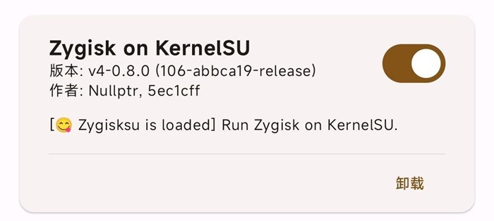 nelSU的模块。让KSU是上成功运行zygisk环境。使用KSU后刷入Zygisk-on-KernelSU模块后
