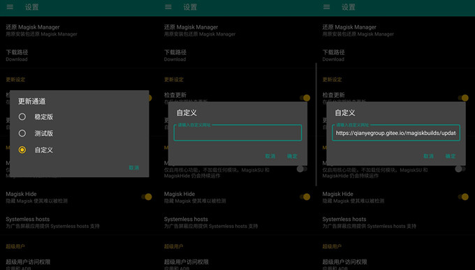 自定义更新通道,最快速解决面具卡正在更新的问题。对于面具卡更新是否影响root权限