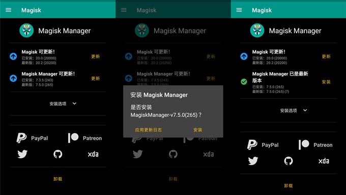 Magisk作者不定期更新,每次更新,已经正确安装Magisk的用户,就会得到升级的提示