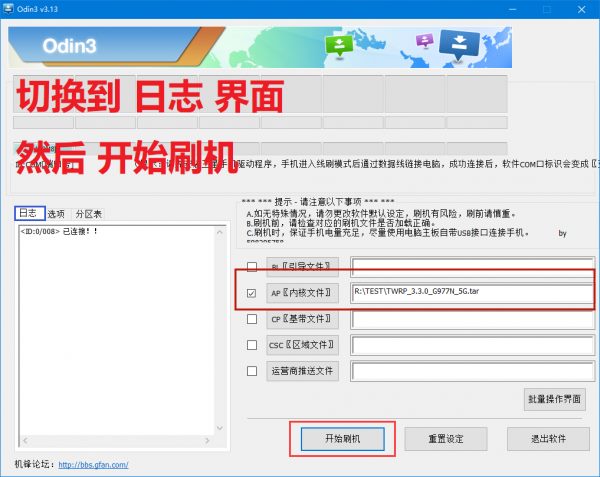 确保自己已经成功解锁了,那么请继续往下看,其实还是常规操作,Odin刷入方式