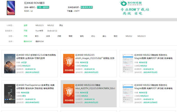 这款redmi K40每天的用户也多,因为一些用户的ROOT需求。我们也在ROM乐园的redmi