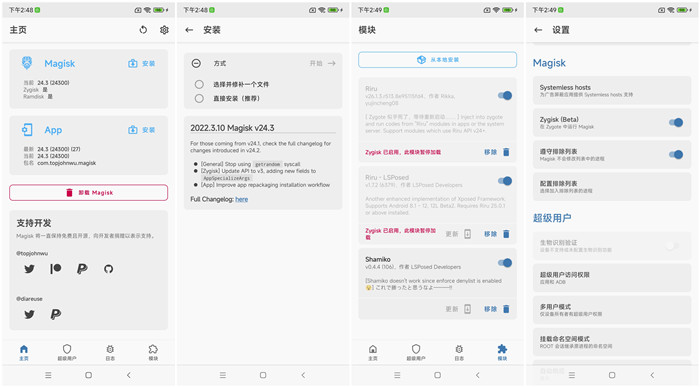 3月10日,Xda大神TopJohnwu再次更新Magisk ROOT软件,推送Magisk V24.3稳定版本。