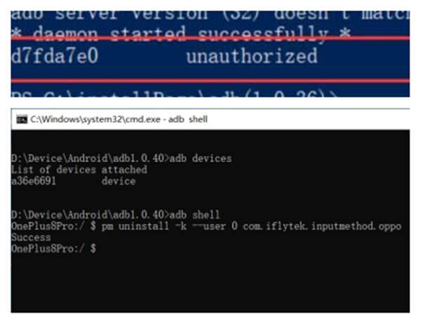 举例如:pm uninstall -k --user 0 com.iflytek.inputmethod.oppo,注意user后面是