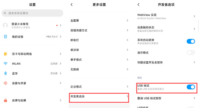 打开USB调试功能