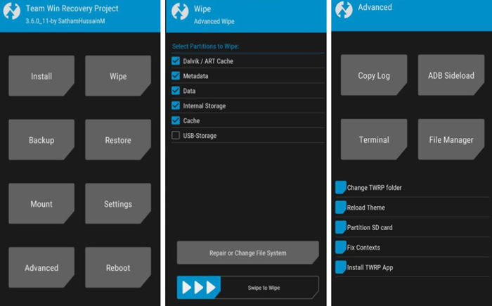 TWRP使用细节说明:当手机成功刷入TWRP后,我们可以通过TWRP直接刷入面具ROOT,官