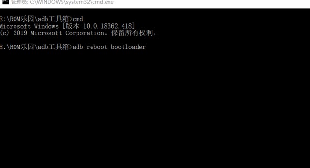 开启USB调试正确连接电脑,打开ADB工具包里启动命令,输入adb reboot bootloader