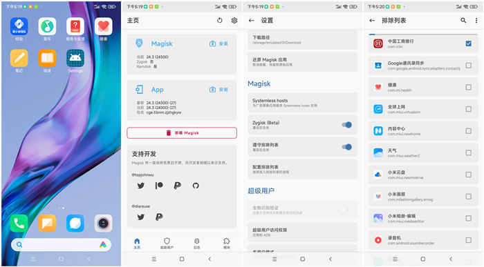 除了刷回官方,我们还可以对银行软件进行隐藏ROOT权限,让工商银行app错误识别手机没