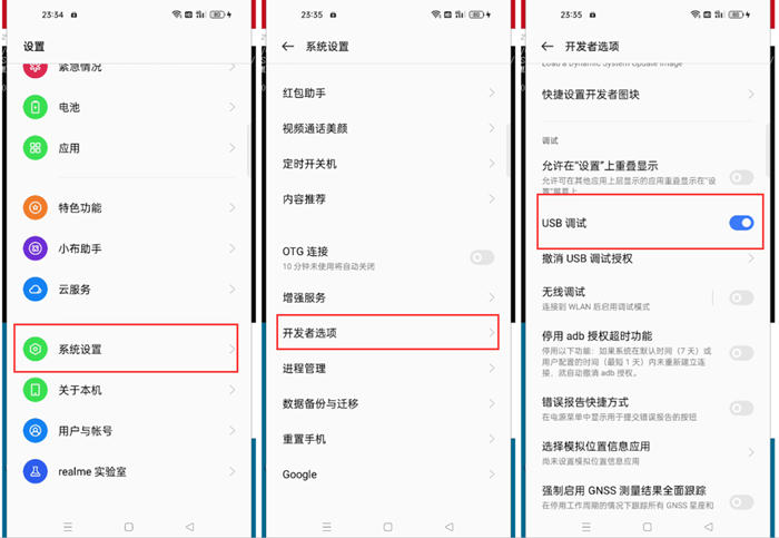 正确的开启USB调试功能,通过以下操作,我们可以轻松的打开真我Q5/Q5Pro的开发者