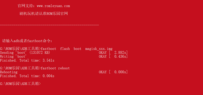 你会看到2个OK代表已经成功刷入,再次输入fastboot reboot回车
