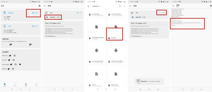 手机里的boot文件,点击开始,此时magisk会自动进boot分区进行维修改,并且生成应该