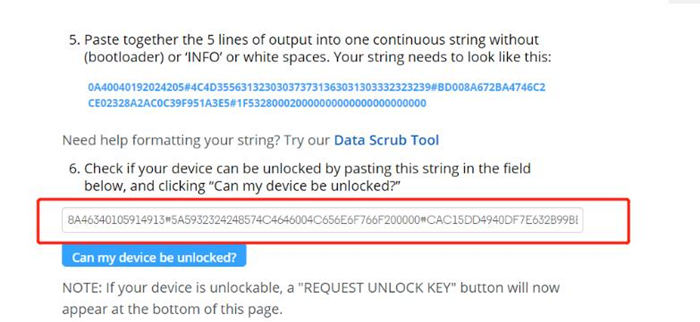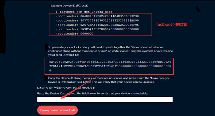 将我们第2步生成的unlock数值去掉括号和括号里面的bootloader还有不必要的问题,然后