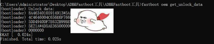 再次输入fastboot oem get_unlock_data 回车,成功读取一堆